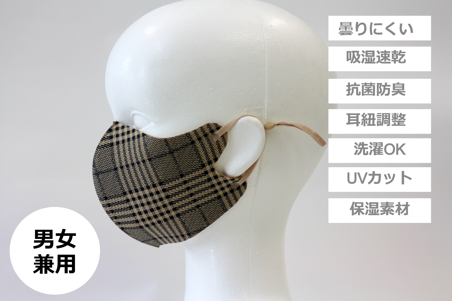 (ゴムには付属のアジャスター付き。耳が痛くなりにくい素材を使用)