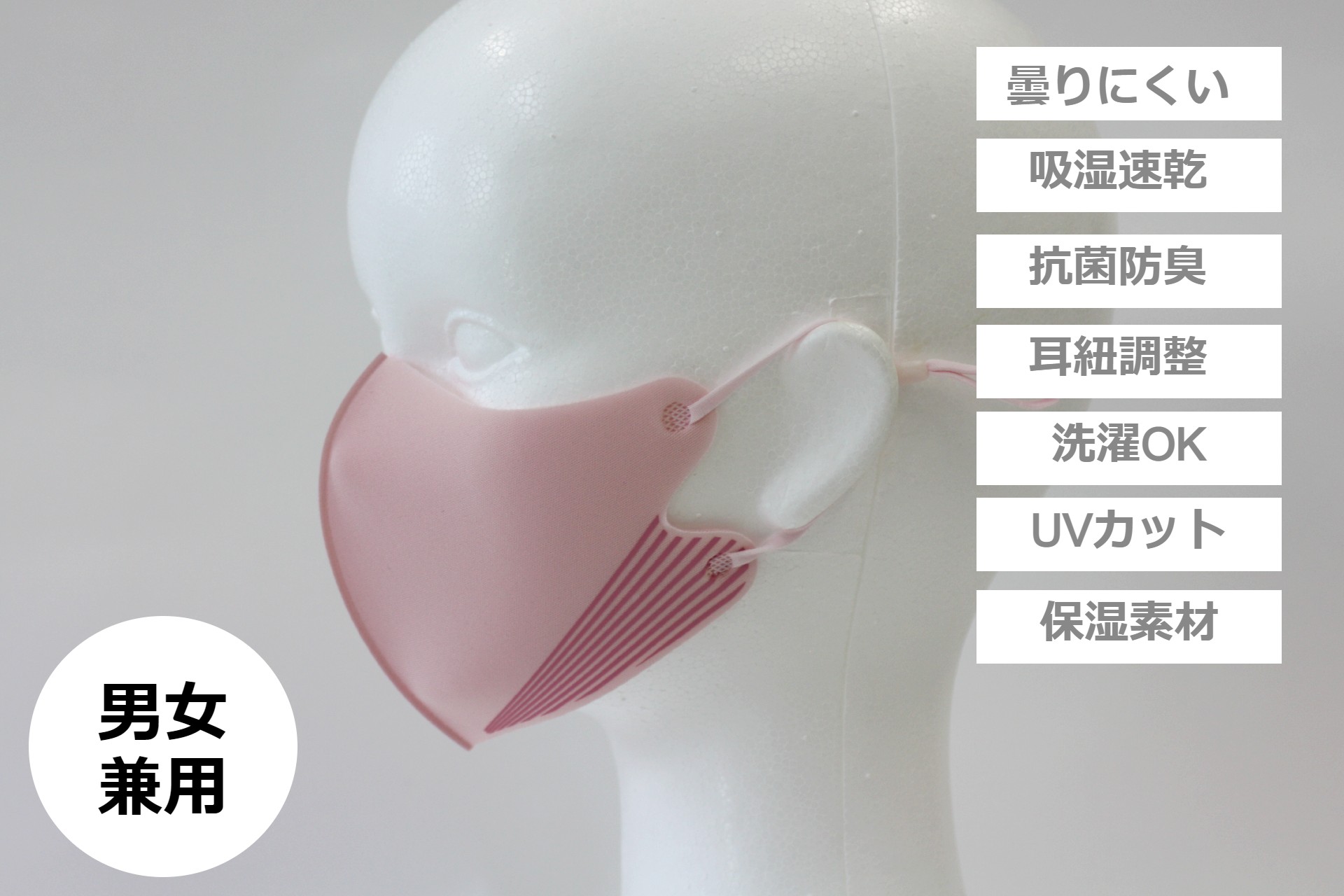 (ゴムには付属のアジャスター付き。耳が痛くなりにくい素材を使用)