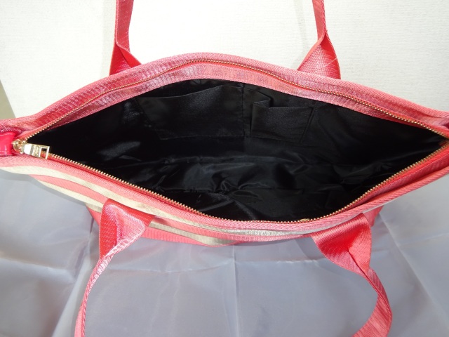 TOPすべての商品 バッグ シートベルトトートストライプ(ピンク×ゴールド):SB4001 価格: ¥6,800 (税込 ¥7,480) 販売期間: 数量: 個 在庫 ○ ご返品についてのご案内 布製より丈夫で革製より軽くて扱いやすい! 肩からゆったりかけられる、ファスナー付きトートバッグ。マチが大きく、たっぷり荷物が入ります。 丈夫なシートベルトで出来たバッグです。 サイズ 幅高さマチ 47cm23cm13cm 素材 シートベルト インナーはナイロン生地です