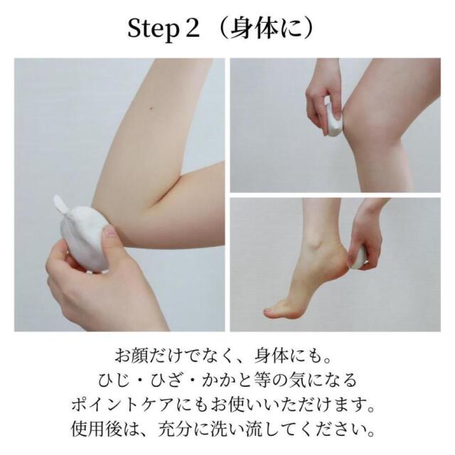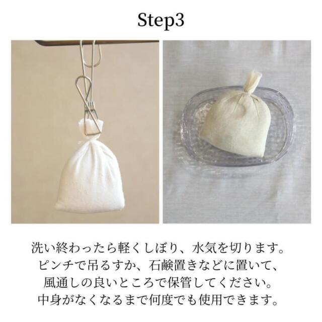 木綿袋にうるおい成分や洗浄成分などが入ったお肌を「洗い・磨く・整える」洗身・洗顔料。
